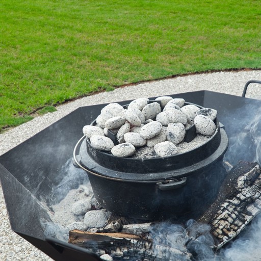 Płaską pokrywę kociołka można zasypać rozżarzonym żarem, dzięki czemu proces gotowanie potraw czy pieczenia chleba będzie przebiegał bardziej równomiernie.