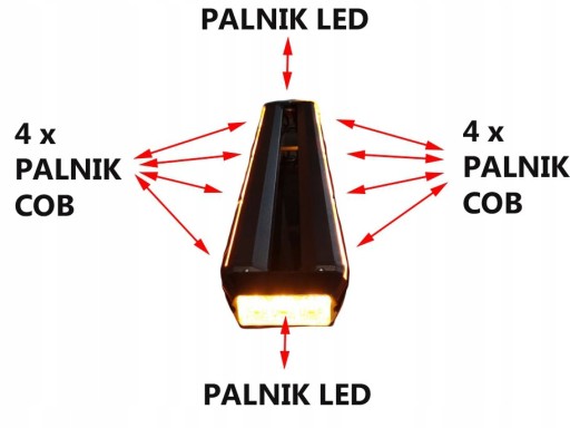 Możliwość zmian funkcji świecenia lampy - każdy moduł lampy jest sterowany niezależnie, co pozwoliło na utworzenie wielu niezwykłych trybów, które są z daleko widoczne na drodze, zapewniając bezpieczeństwo. Tryby zawierają zarówno te klasyczne "strobo" z migającymi jednocześnie wszystkimi modułami, przez "kroczenie" światła od lewej do prawej strony lampy do najciekawszych - naprzemienne zapalenie powyższych. W różnych kombinacjach, łącznie można korzystać z ok. 10 trybów, łącznie z pracą w trybie ciągłym (stałe, pomarańczowe światło).