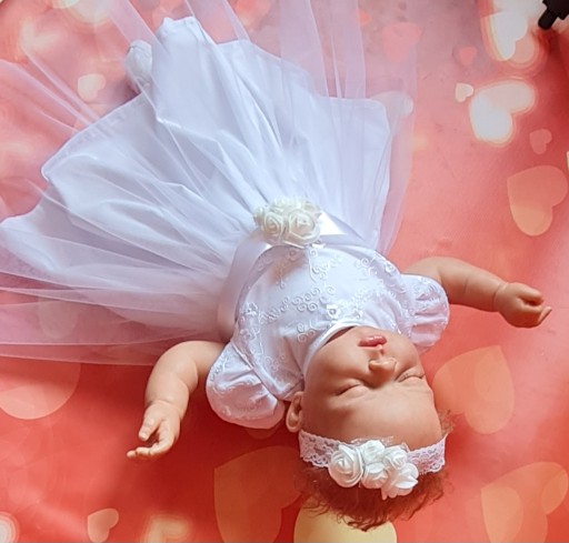 BAWEŁNIANA SUKIENKA I OPASKA DO CHRZTU