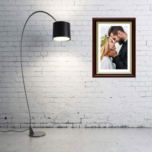 Ramka drewniana VELIA 1903, wąska fotoramka na zdjęcia, plakaty lub rysunki - kolor brązowy ze złotym paskiem