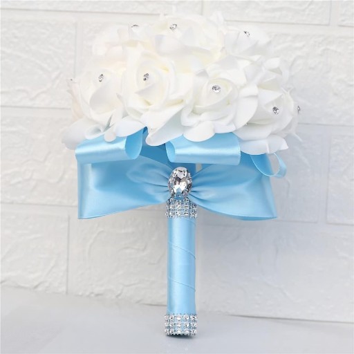 ✿ 【GRANATOWY BUKIET】: Nasze uchwyty bukietu panny młodej są owinięte granatową wstążką, co nadaje bukietowi elegancki i piękny wygląd. Jeśli lubisz niebieski, nasz piankowy bukiet róż będzie dla Ciebie dobrym wyborem