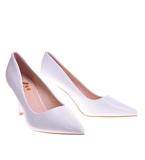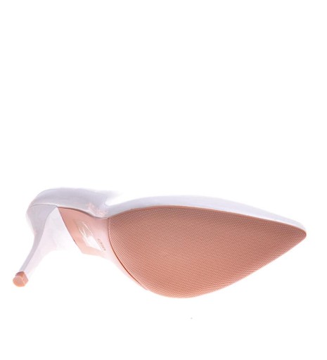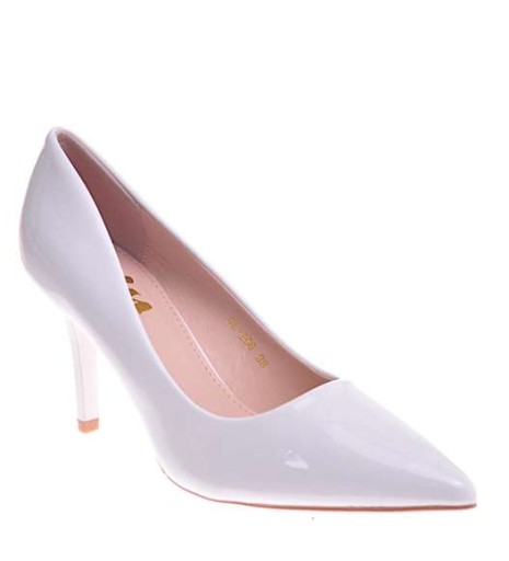 - Wyszczuplające wysokie czółenka damskie na szpilce wykonane ze skóry ekologicznej w kolorze białym.
