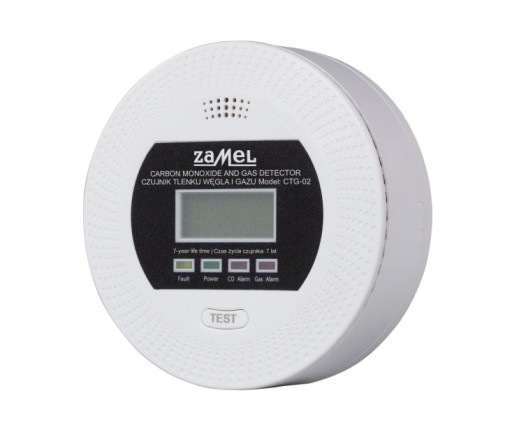 Czujnik CTG-01 służy do ciągłego monitorowania niebezpiecznego stężenia tlenku węgla oraz gazu ziemnego i propan butan w powietrzu. W momencie wykrycia niebezpiecznego stężenia urządzenie załącza alarm dźwiękowy i optyczny.
