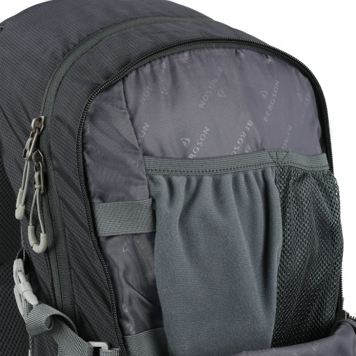 Komfortowy bardzo pojemny plecak firmy BERGSON o innowacyjnej budowie systemu nośnego. Model Lote 20 sprawdzi się zarówno podczas wycieczek w góry oraz jako plecak miejski. Posiada wygodny pas biodrowy oraz pas piersiowy stabilizujący plecak na ramionach z wbudowanym w klamrę gwizdkiem ratunkowym. Dzięki dodatkowej kieszeni wewnątrz plecaka oraz specjalnemu otworowi, został on przystosowany do montażu bukłaka (oferta pasujących bukłaków znajduje się na innych naszych aukcjach). Plecak posiada również możliwość przytroczenia kijów lub czekana. Dzięki systemowi nośnemu AIR FLEX SQ-MESH® z anatomicznie ukształtowanymi szelkami w kształcie litery "S", plecak bardzo dobrze się nosi, jest wygodny i nawet po długiej wędrówce nie będziemy czuć zmęczenia. Bardzo solidnie wykonany i dobrze wykończony - dopracowany każdy szczegół. Wykonany z najwyższej klasy materiałów: Rip-Stop Duront® - bardzo wytrzymała, a zarazem lekka tkanina o strukturze plastra miodu, wzmocniona dodatkowo poprzez dodanie dodatkowego, mocniejszego włókna. Dzięki użyciu siatki AIR-MESH na szelkach oraz na poduszkach systemu nośnego, plecak umożliwia swobodną cyrkulację powietrza. Plecak charakteryzuje się dużą stabilnością oraz umożliwia komfortową eksploatację nawet w ciężkich warunkach przy dużych obciążeniach.