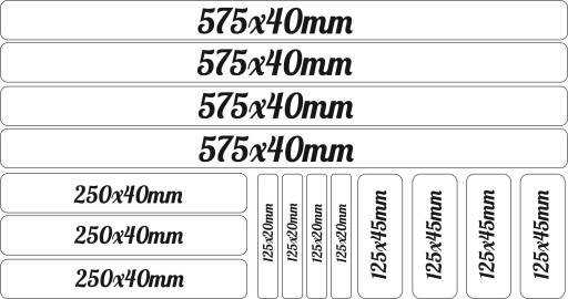 Zestaw składa się z 15 naklejek wymiary podane na zdjęciu obok.