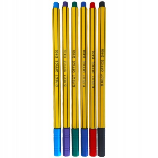 Komplet zawiera 6 cienkopisów - czerwony, niebieski, zielony, czarny, granatowy, fioletowy
