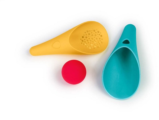 Zestaw łopatek wielofunkcyjnych Cuppi belgijskiej marki Quut przyciąga wzrok niebanalnym designem i oryginalną kolorystyką. Składa się z 2 poręcznych, lekkich i łatwych do utrzymania przez dziecko łopatek w kształcie odwróconych stożków.