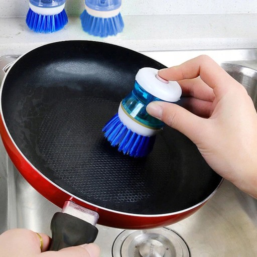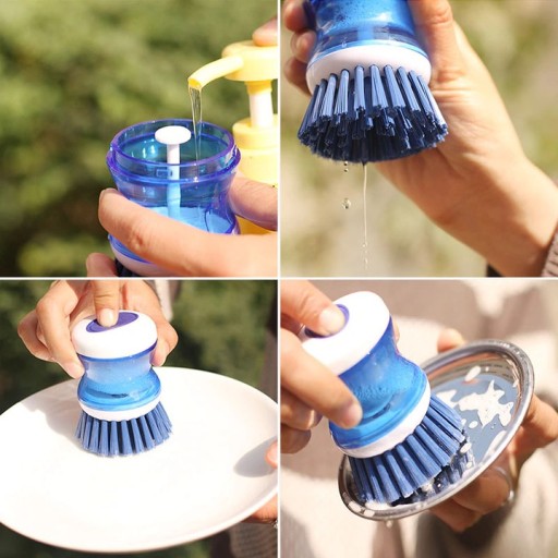 》Uniwersalna, praktyczna szczotka do użytku domowego z dozownikiem detergentu np. płynu do naczyń.