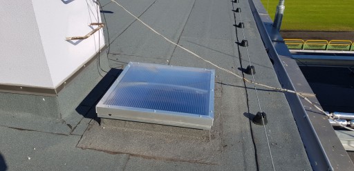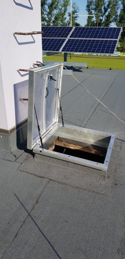 Czy od czasu do czasu trzeba dostać się na dach? Nasze wyłazy dachowe otwierane są i umożliwiają na sprawne i bezpieczne wyjście na dach do anten, kominów, rynien lub innych elementów znajdujących się na dachu z klatek schodowych lub innych pomieszczeń. Dwa siłowniki gazowe zamontowane w górnej części wyłazu ułatwiają otwarcie okna i zapewnia jego stabilne zablokowanie.