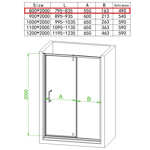 - Rozmiar drzwi prysznicowych: 80