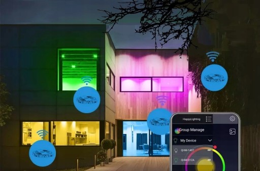 Grupuj swoje urządzenia Happy Lighting poprzez aplikację i steruj nimi na wyciągnięcie ręki. Zasięg Bluetooth wynosi do 30M.
