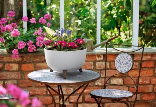Misa Roma charakteryzuje się gładką, matową powierzchnią.Donica posiada trzy wpinane nóżki imitujące drewno i wkładkę na dno, pozwalającą utrzymywać odpowiednie nawodnienie roślin. Misa nie posiada podstawki.Nowoczesne wzornictwo i kolorystyka sprawi, że donica będzie pasowała do każdego wnętrza lub ogrodu. Nóżki misy wykonane z tworzywa imitującego drewno. Misa Roma jest produktem do samodzielnego prostego montażu. Doniczki te można stosować wewnątrz pomieszczeń oraz na zewnątrz gdyż są mrozoodporne i odporne na promienie UV. Misa Roma może być wykorzystywana jako osłonka dla kwiatów lub bezpośrednio do sadzenia roślin.Idealnie nadaje się do dekoracji balkonów i tarasów oraz miejsc wypoczynkowych w ogrodach