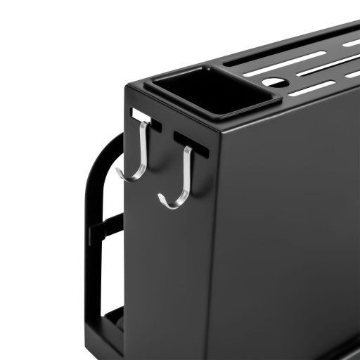 - Konstrukcja haczyka : cztery haczyki po obu stronach produktu można łatwo przesuwać i używać do wieszania rękawiczek, szmat, mikserów itp., co pozwala zaoszczędzić miejsce.