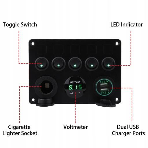 - Ultra luksusowy zmodyfikowany 5-krotny panel przełączników z zielonym światłem roboczym LED.
