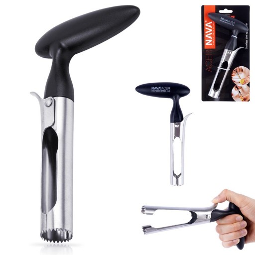 Praktyczna drylownica do usuwania gniazd nasiennych z jabłek i gruszek. Pomoże przygotować idealnie wydrążone owoce gotowe do nadziewania lub wycinania dekoracyjnych kształtów. Doskonale sprawdzi się podczas przygotowywania nadziewanych jabłek, szarlotek, ciast czy deserów. Solidnie wykonana i wygodna w użytkowaniu. Przydatna w każdej kuchni. Całkowicie bezpieczna dla zdrowia i neutralna dla żywności. Oryginalny produkt greckiej marki NAVA z linii przyborów kuchennych Acer. Wyprodukowano zgodnie z europejskimi standardami.