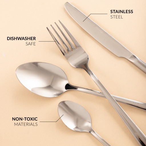 Sztućce wykonane zostały ze stali nierdzewnej, są łatwe do utrzymania w czystości. Można je myć w zmywarce do naczyń.