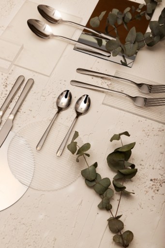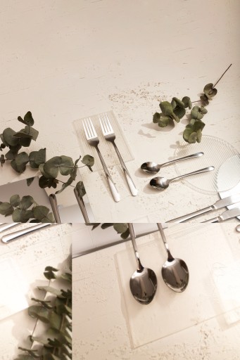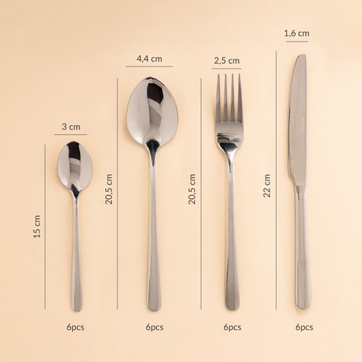 Zestaw sztućców HOMLA LUGANO złożony jest z 24 elementów (po 6 sztućców każdego rodzaju) - łyżek do zupy, widelców, noży obiadowych oraz łyżeczek deserowych. Sztućce wyróżniają się nowoczesnym, stylowym designem, a dzięki najwyższej jakości stali nierdzewnej trwale zachowują swój atrakcyjny wygląd.