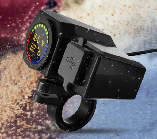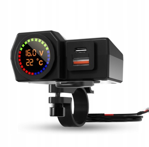 Nazwa produktu: motocykl z kolorowym ekranem temperatury i wyświetlaczem napięcia podwójna ładowarka z portem USB C