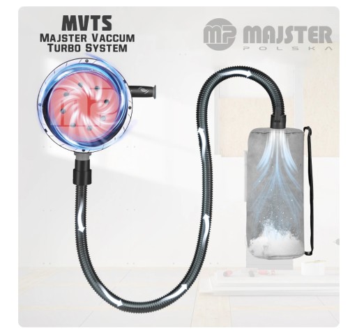 Podciśnienie wytwarzane turbiną jest na tyle duże ,że ma dodatkową regulację, kierując praktycznie całość pyłu do worka który jest w zestawie.