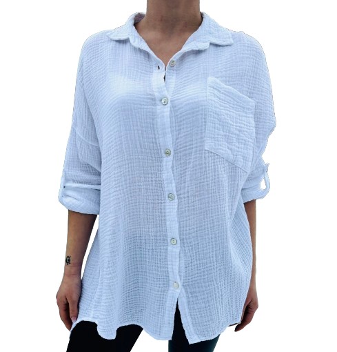 Modna koszula muślinowa Oversize - biała