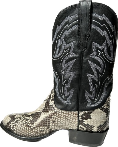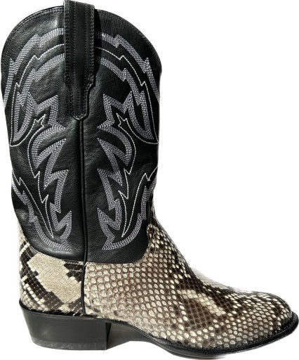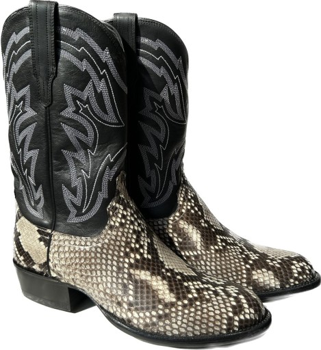 Naturalny pyton cięty na brzuch otacza przyszwę i ladę The Bryce. Stoi na skórzanej podeszwie i skórzanym obcasie z gumową końcówką.