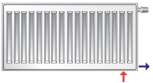 Możliwość podłączenia bocznego występuje po wyjęciu wkładki termostatycznej. Rozwiązanie umożliwiające podłączenie grzejników zarówno z prawej, jak i z lewej strony. Przewód zasilający powinien być podłączony do górnego króćca grzejnika, natomiast powrotny do dolnego. Odwrotne podłączenie powoduje spadek mocy cieplnej grzejnika o ponad 30%.