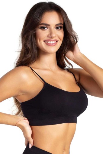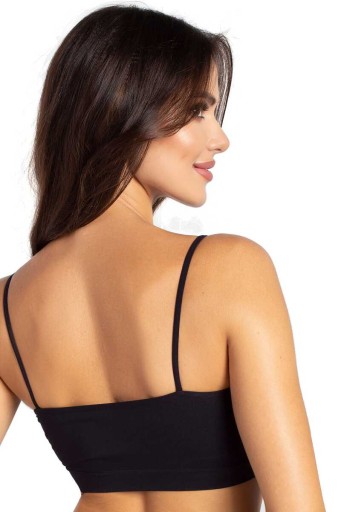 - Na cienkich ramiączkach wykonany z poliamidu z dodatkiem elastanu.