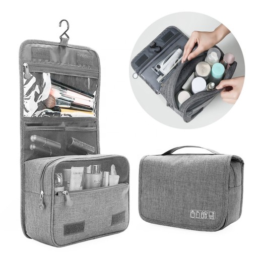 Podróżna kosmetyczka dla kobiet i mężczyzn. Jest idealna do zabrania w podróż, zmieści się do walizki, zajmuje niewiele miejsca. Jej wymiary to 23x19cm po złożeniu. Kosmetyczka posiada przegródki pozwalające na spakowanie różnych typów kosmetyków.