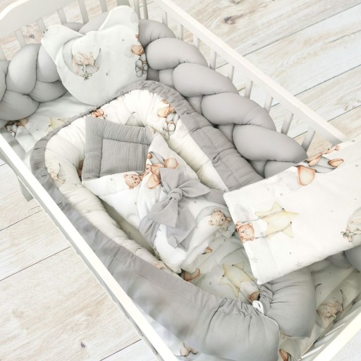 Uroczy zestaw do łóżeczka dla niemowlaka składa się: