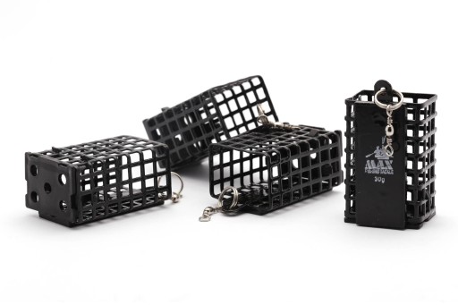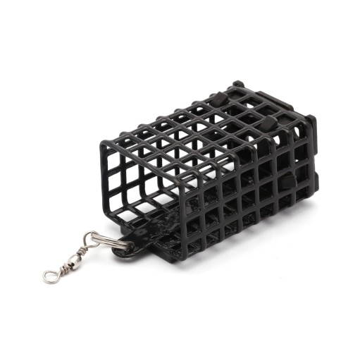 Metalowy koszyk zanętowy używany do metod gruntowych.