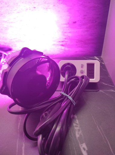 Dzięki specjalnemu zasilaczowi przymocowanego do radiatora, wentylator załącza się jednym przewodem razem z LED GROW.