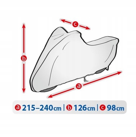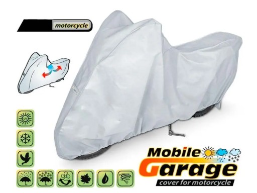 Całoroczny, nieprzemakalny pokrowiec do ochrony motocykla przechowywanego na zewnątrz przed niekorzystnym wpływem środowiska. Dzięki specjalnej konstrukcji woda podczas deszczu spływa po pokrowcu nie wnikając pod pokrowiec, a para wodna odprowadzana jest na zewnątrz. Chroni motocykl przed deszczem, śniegiem, szronem i promieniami słonecznymi (szkodliwym UV) oraz zanieczyszczeniami jak pył, ptasie odchody i soki z drzew. Ogranicza korozję i starzenie się elementów z tworzyw sztucznych, chroni przed blaknięciem i matowieniem lakieru oraz elementów chromowanych. Pokrowiec jest w pełni odporny na wszystkie warunki atmosferyczne. Mocowany jest za pomocą elastycznego ściągacza, dzięki czemu jest łatwy do zakładania i ściągania. Odpowiedni także do użytku wewnątrz pomieszczeń.