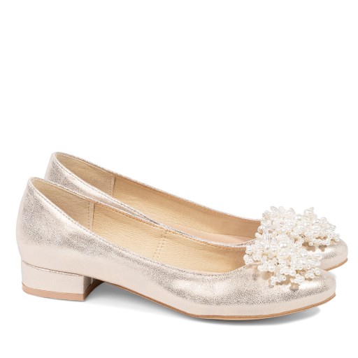 Ślubne połyskujące balerinki z perłową ozdobą Amaris złote