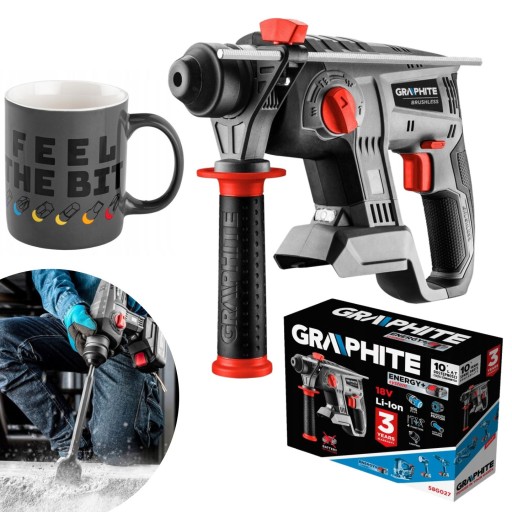 Młotowiertarka akumulatorowa bezszczotkowa Energy+ 18V, Li-Ion, udar 2.2J, bez akumulatora 58G027 GRAPHITE + Kubek NEO TOOLS
