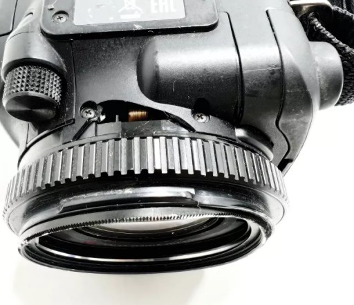 Zdjęcia przedstawiają sprzedawany przedmiot. Kamera używana, w pełni sprawna, w dobrym stanie. Pod spodem kamery, przy obiektywie pęknięcie i ubytek widoczne na zdjęciach. Obudowa obiektywu zdeformowana lekko, problem z zabezpieczniem akumulatora, czasami może wypaść. Rączka sklejona izolacją, pęknięta. Wszystkie wady widoczne są na zdjęciach, wady są spowodowane upuszczeniem kamery.