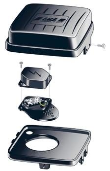 Nakładka wykonana jest z aluminium i posiada elektrycznąpuszkę przyłączeniową, do której można podłączyć przewody o przekroju do 4 mm2.