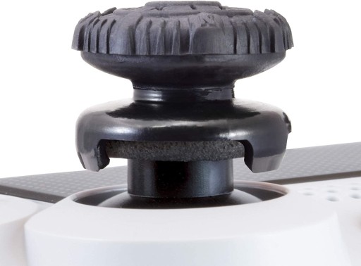 - Poprawiony chwyt: Nakładki są wykonane z gumowego materiału o specjalnej strukturze, co zapewnia lepszy chwyt palca na gałkach analogowych. Dzięki temu kontroler jest bardziej pewny w dłoni, co może przyczynić się do zmniejszenia zmęczenia podczas długich sesji grania.