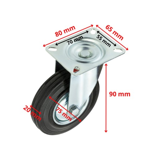 РЕЗИНОВЫЕ ТРАНСПОРТНЫЕ ПОВОРОТНЫЕ КОЛЕСА 75 мм ДЛЯ ТЕЛЕЖЕК