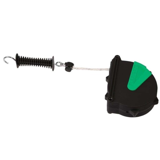 Zestaw Flexigate umożliwa podłączenie wejścia padoku do obwodu elektrycznego zawartego w ogrodzeniu. W trakcie otwarcia taśma lub linka zostaje zwinięta automatycznie wewnątrz kasety.