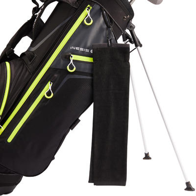Ręcznik do czyszczenia kijów i piłek. Ręcznik składany na 3: osłoniętą stroną wewnętrzną można wycierać kije i piłki, odsłoniętą zewnętrzną - ręce i gripy.
