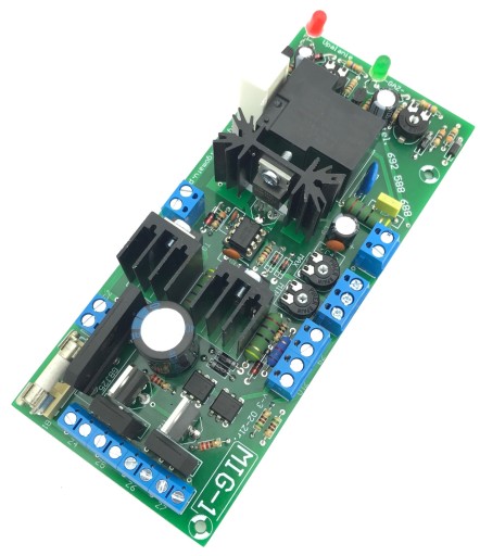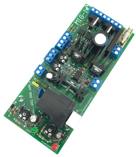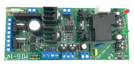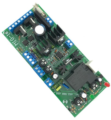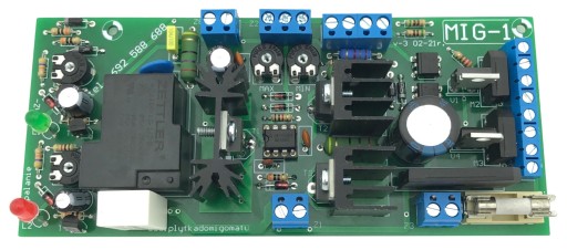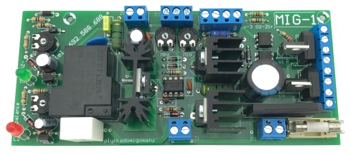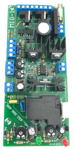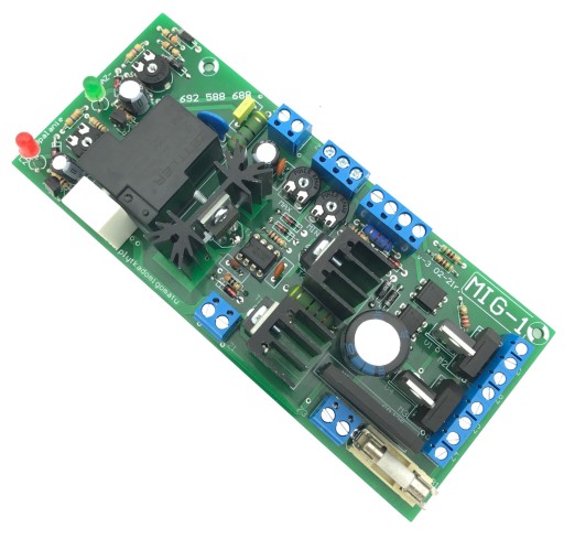 W zestawie płytka MIG-1 oraz potencjometr regulacji prędkości posuwu drutu, termik zabezpieczający i dioda LED sygnalizująca przegrzanie.