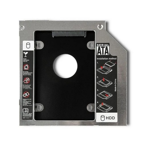 Aluminiowa kieszeń umożliwi Ci instalację drugiego dysku HDD na Twoim laptopie. Kieszeń jest standardowa, kompatybilna z większością laptopów dostępnych na rynku (wysokość 9.5 mm).