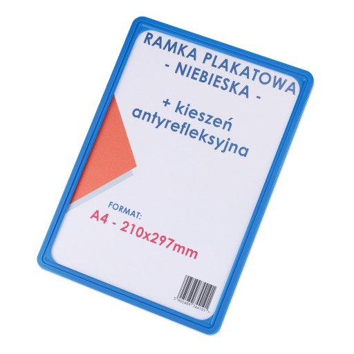 ✅ Skład zestawu: ramka plakatowa A4 niebieska oraz kieszeń plakatowa A4 antyrefleksyjna