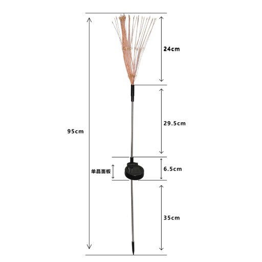 Lampa solarna SWETIYOU - diody ułożone są na kształt rozbłyskających fajerwerków. Na oryginalnym, czarnym grocie ziemnym w połowie wysokości zwykłej platformy jest moduł solarny, który jest wyposażony w akumulator specjalny, że fajerwerki lśnią w ciemności. Lampa jest sterowana przez czujnik zmierzchu , który włącza ją wieczorem i wyłącza ponownie rano. Kolor białego podświetlenia diod LED stanowi wspaniały akcent świetlny w ogrodzie.