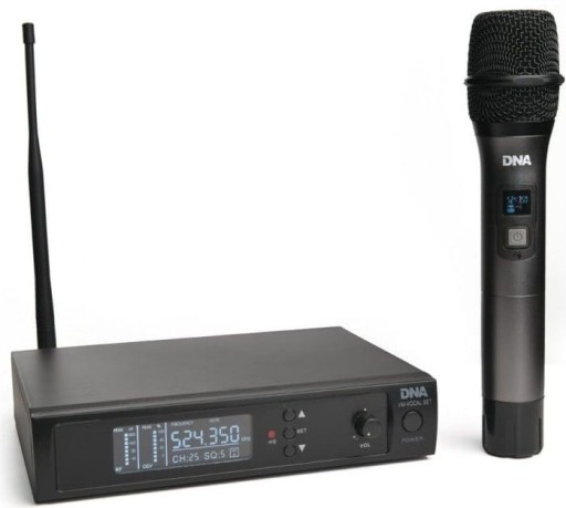DNA VM – VOCAL SET to wysokiej jakości bezprzewodowy system mikrofonowy oparty na technologii cyfrowej. Zestaw składa się z odbiornika UHF oraz mikrofonu.