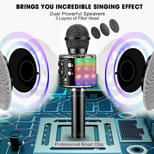 podczas śpiewania mikrofon umożliwia regulację siły głosu, podkładu muzycznego, siły basów, sopranów. Zmiana głosu może dodać pewności osobie śpiewającej oraz zaskoczyć każdego słuchacza. Mikrofon umożliwia również nałożenie efektu echo.