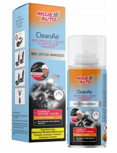 Czy wiesz, jakie są skutki nieprawidłowego użytkowania systemu wentylacji w samochodzie? Przede wszystkim to miejsce, które sprzyja rozwoju bakterii i grzybów. Zanieczyszczenia, które się w nim gromadzą skutkują jego niewłaściwą pracą. Ponadto we wnętrzu samochodu pojawia się nieprzyjemny zapach, a także wzrasta wilgotność powietrza. Wszystko to powoduje, że system wentylacji nie spełnia swojej funkcji, a jazda jest mniej komfortowa i bezpieczna. Dlatego marka Moje Auto stworzyła serię preparatów do bieżącego oczyszczania systemów klimatyzacji i wentylacji CleanAir.