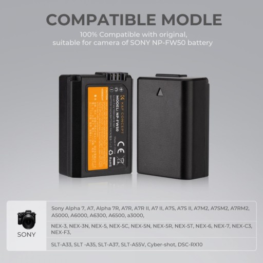 - Sony Alpha 7, A7, Alpha 7R, A7R, A7R II, A7 II, A7S, A7S II, A7M2, A7SM2, A7RM2, A5000, A6000, A6300, A6500, a3000, NEX-3, NEX-3N, NEX-5, NEX-5C, NEX-5N, NEX-5R, NEX-5T, NEX-6, NEX-7, NEX-C3, NEX-F3, SLT-A33, SLT-A35, SLT-A37, SLT-A55V, Cyber-shot, DSC-RX10
