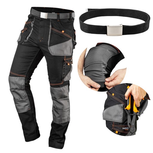 Spodnie robocze HD Slim NEO (nr ref. 81-238) są wygodnym i praktycznym produktem. Wykonane z wysokiej jakości materiału z dodatkiem elastanu, a miejsca najbardziej narażone na przetarcie zostały wzmocnione tkaniną Oxford. Wielofunkcyjne kieszenie przechowają wszystkie niezbędne narzędzia. Do spodni dołożony jest pasek. Oznaczenie CE to gwarancja bezpieczeństwa, dowodzi, że produkt spełnia wszystkie unijne wymagania. Marka NEO spełnia oczekiwania profesjonalistów.