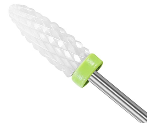 Frez ceramiczny usuwa masę delikatnie, nie powodując drgań. Odpowiednia struktura ząbków ściąga żel, akryl oraz lakiery hybrydowe nie uszkadzają płytki paznokcia. Dzięki innowacyjnej technologii użycia tlenku cyrkonu ,frez pracuje cicho i delikatnie nie przenosząc drgań i nie przegrzewając płytki.